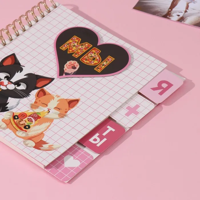 Фотоальбом на спирали 20 листов "Котики с пиццей" объёмный элемент + 4 вкладки 24х24 см — Характеристики