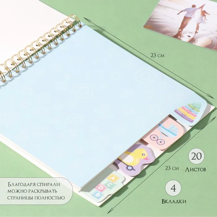 Фотоальбом на спирали 20 листов "Моё детство" объёмный элемент + 4 вкладки 24х24 см — Характеристики