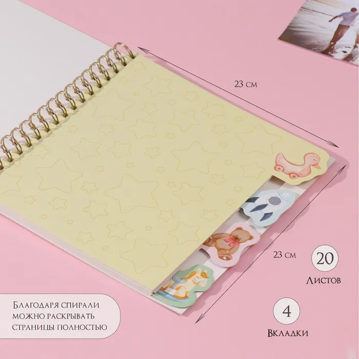 Фотоальбом на спирали 20 листов "Посмотрите на меня!" объёмный элемент + 4 вкладки 24х24 см 104995 — Характеристики