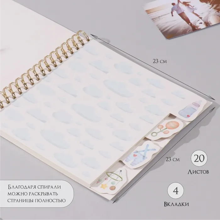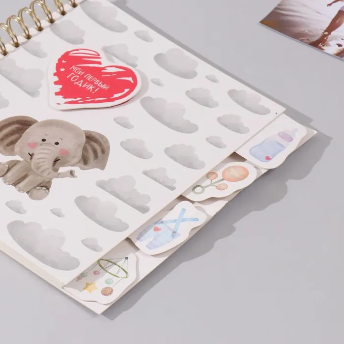 Фотоальбом на спирали 20 листов "Слонёнок и сердце" объёмный элемент + 4 вкладки 24х24 см — Характеристики