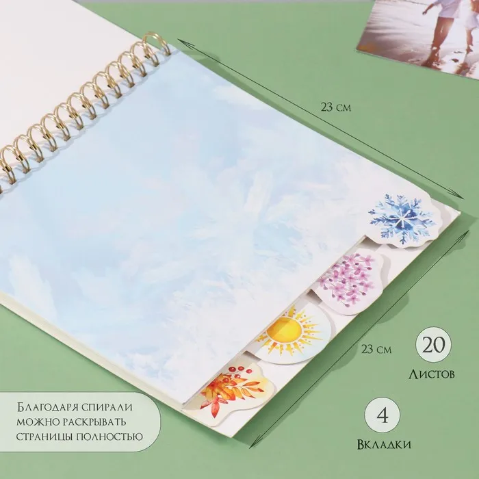 Фотоальбом на спирали 20 листов "Время года" объёмный элемент + 4 вкладки 24х24 см — Характеристики