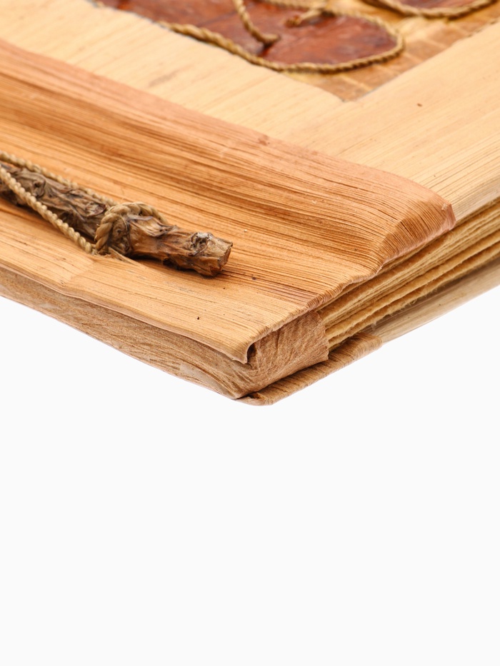 - Обложка из прочного пальмового листа — экологичная, с живой фактурой, напоминающей о природе и отпуске.