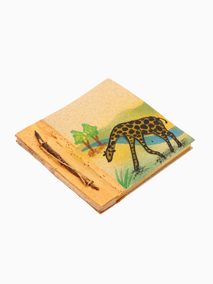 Фотоальбом «Жираф» — квадратный альбом в твёрдой обложке из пальмового листа для самых тёплых детских воспоминаний. Его образ — добрый, высокий жираф — будто заглядывает в каждый кадр с любопытством и заботой. Без лишних слов, без подписей — только чистые моменты: первые шаги, смех в саду, сонные объятия. Этот альбом создан для того, чтобы хранить свет.