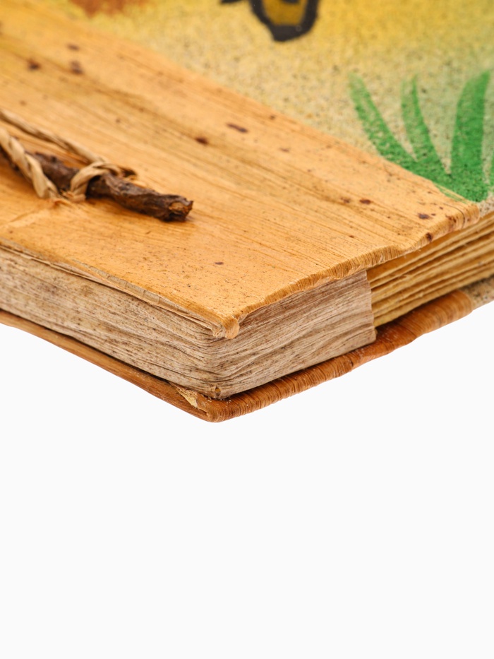 - Обложка из натурального пальмового листа — экологичная, прочная, с мягкой природной текстурой.