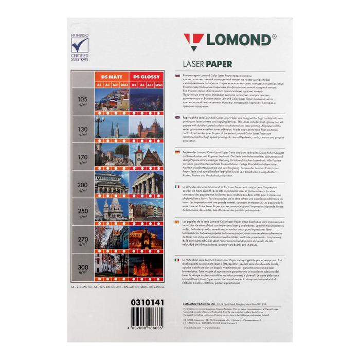 Суперкаландрированная двусторонняя бумага для печати изображений высокого качества с разрешением до 600 dpi.Бумаги серии Lomond Color Laser Paper предназначены для высококачественной полноцветной печати на лазерных принтерах и копировальных аппаратах. Серия включает матовые и глянцевые бумаги с двусторонним покрытием для фотореалистичной лазерной печати. Суперкаландрированная бумага со специальным многослойным покрытием, имеющая многофункциональное назначение обеспечивает превосходную адгезию тонера. Полученные отпечатки обладают высокой четкостью, контрастностью, долговечностью. Бумага Lomond Color Laser Paper рекомендуется для скоростной печати цветных брошюр, вкладышей, карточек, постеров; может с успехом использоваться для производства препринт-продукции. Все бумаги Lomond серии Color Laser сертифицированы для использования на цифровых офсетных машинах HP Indigo (R).