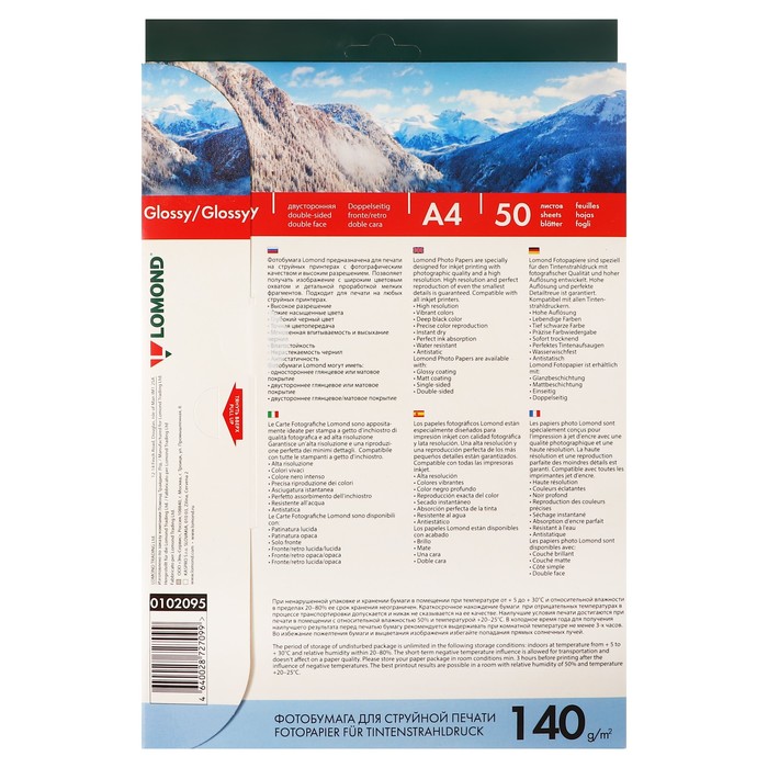 Фотобумага для струйной печати А4, 50 листов LOMOND, 140 г/м2, двусторонняя, глянцевая — Характеристики