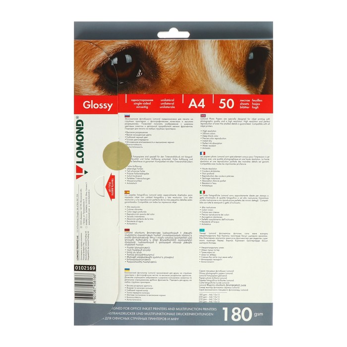 Фотобумага для струйной печати А4, 50 листов LOMOND, 180 г/м2, односторонняя, глянцевая — Характеристики