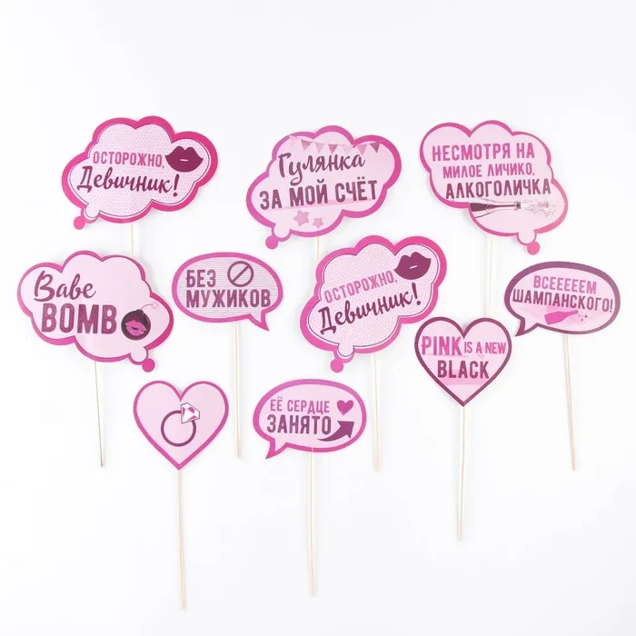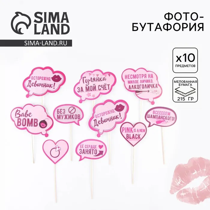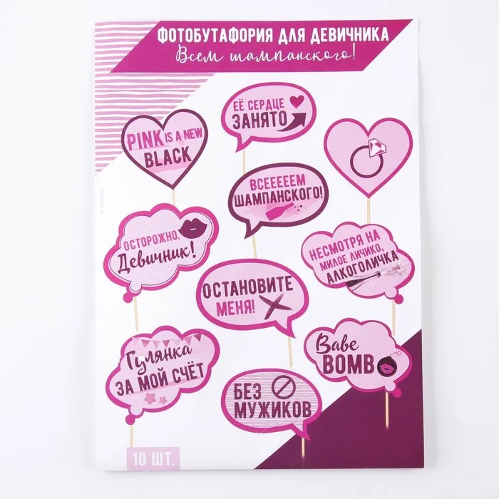 Набор для фотосессии 10 предметов. Аксессуары для фотосессий сделают любую вечеринку незабываемой, ведь ни один праздник не обходится без фото, будь то день рождения, гендерпати, 23 февраля, 8 марта, Новый год, свадьба, девичник или просто праздничная вечеринка. На любом празднике хочется выделяться, а карточки для фотобутофории отлично выполнят эту задачу, сделают вас заметным и неповторимым. Любой ребенок, девочка или мальчик, обязательно захотят сфотографироваться с набором аксессуаров для фотосессии. Данный набор фотобутофории отличный вариант для девичника, замечательно впишется в любую тематику торжества.