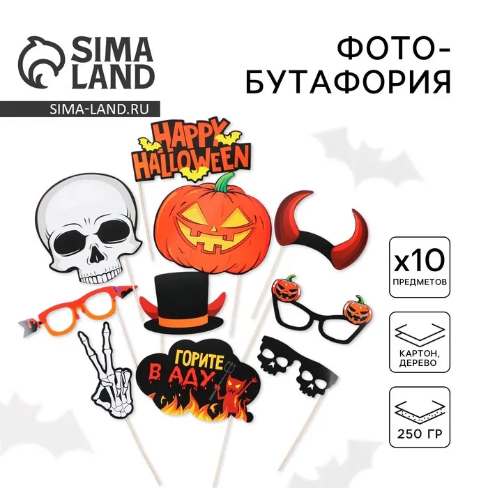 Хотите сделать Хэллоуин ярким и незабываемым? Набор картонной фотобутафории - незаменимый помощник в таком деле. В него входят 10 ярких тематических предметов на деревянных палочках, которые преобразят вас до неузнаваемости.