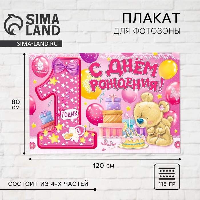 Плакат для фотозоны «1 годик», девочке, набор из 4 шт., 120×80 см