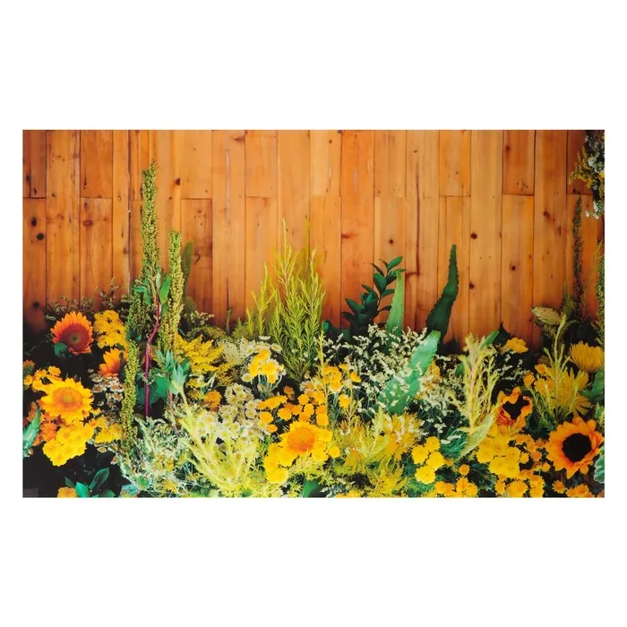 Фотофон для съёмок, винил «Жёлтые цветы на дощатой стене», 80×125 см — Характеристики