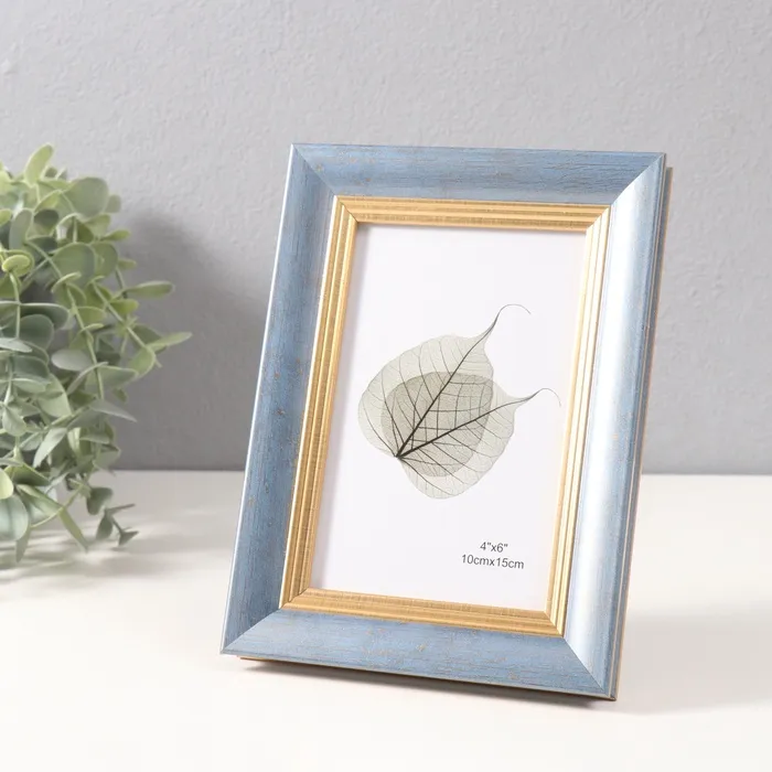 Фоторамка 10×15 см «Габриэль», пластик, синяя с золотой полосой, 2.2×14×19 см — Характеристики