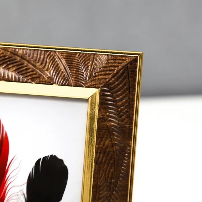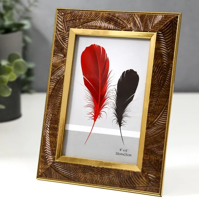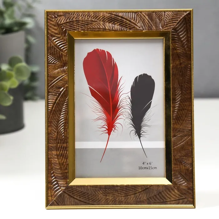 Фоторамка 10×15 см «Листья на шоколаде, золотая двойная рамка», пластик, 19.8×14.8 см — Характеристики