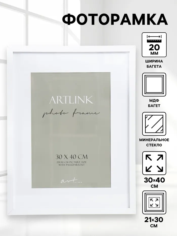 Фоторамка МДФ "Ellis" 30x40 см, с паспарту, белый