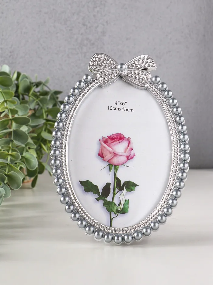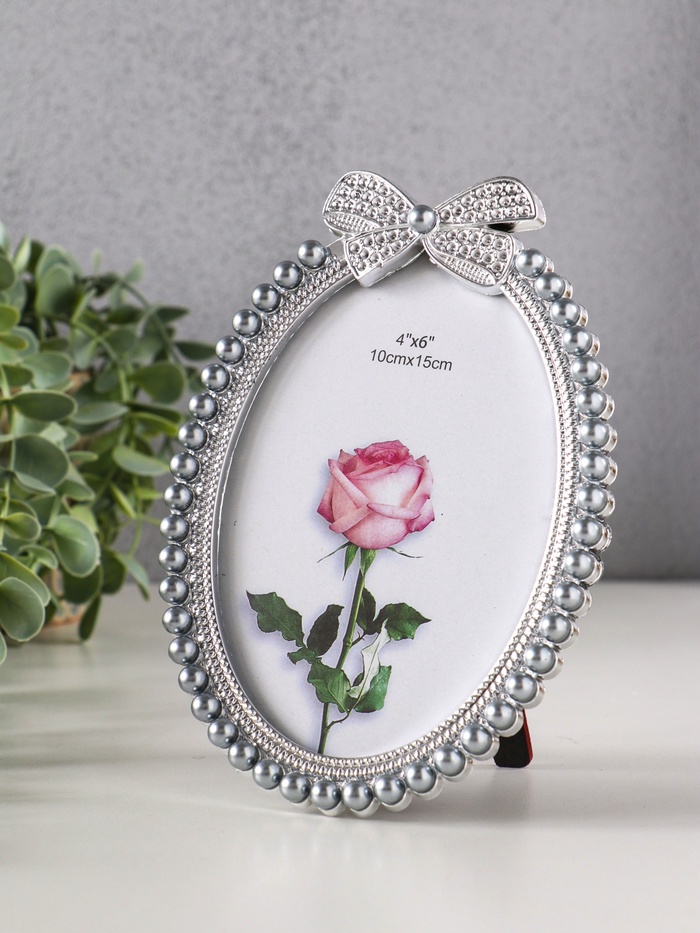 Фоторамка для фото 10×15 см «Бант», пластик под металл, жемчуг и стразы, серо-голубая, 17.5×11.5 см — Характеристики