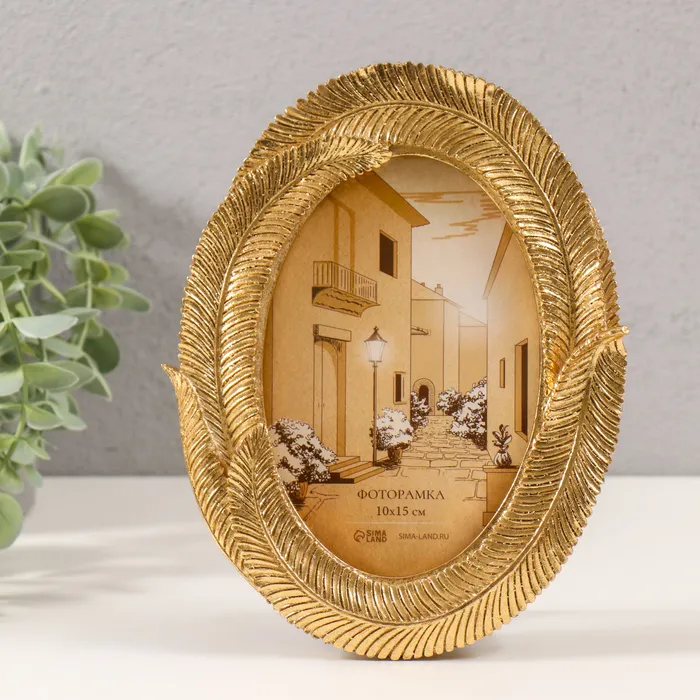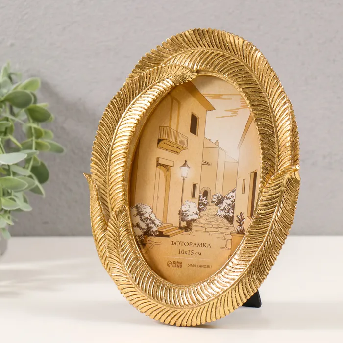 Фоторамка для фото 10×15 см «Листья», овальная, полистоун под золото, 15×1.7×19.5 см — Характеристики