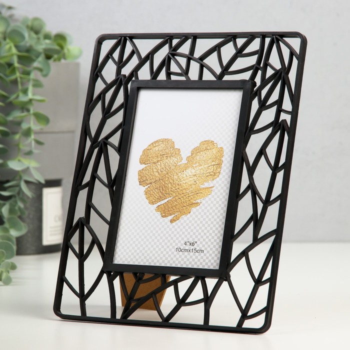 Фоторамка для фото 10×15 см «Листья», пластик, чёрная, 18×23 см — Характеристики