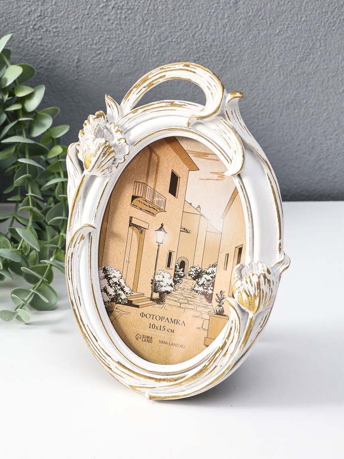 Фоторамка для фото 10×15 см «Махровые тюльпаны», полистоун, белая с золотом, 14×2.5×20 см — Характеристики