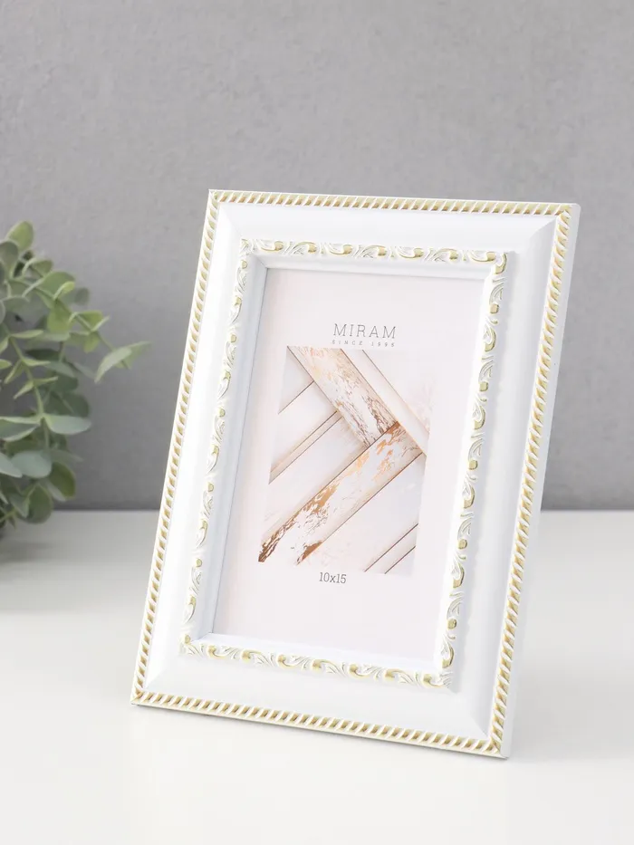 Фоторамка для фото 10×15 см «МИРАМ», пластик, белый с золотом — Характеристики