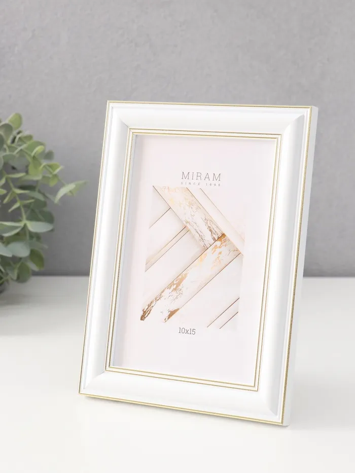 Представляем вашему вниманию фоторамку, которая станет идеальным обрамлением для ваших самых ценных моментов. Сочетание белого и золотистого цветов придаёт изделию элегантность и универсальность, делая его подходящим как для современного, так и для классического интерьера. Эта рамка не только подчёркивает красоту фотографии, но и добавляет пространству изысканности и гармонии.