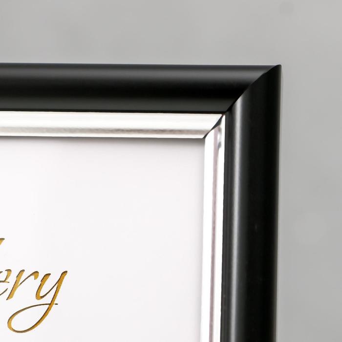 Фоторамка для фото 10×15 см «МИРАМ», пластик, чёрный с серебром, (пластиковый экран) — Характеристики