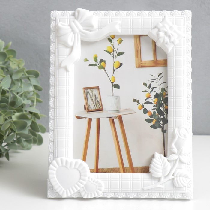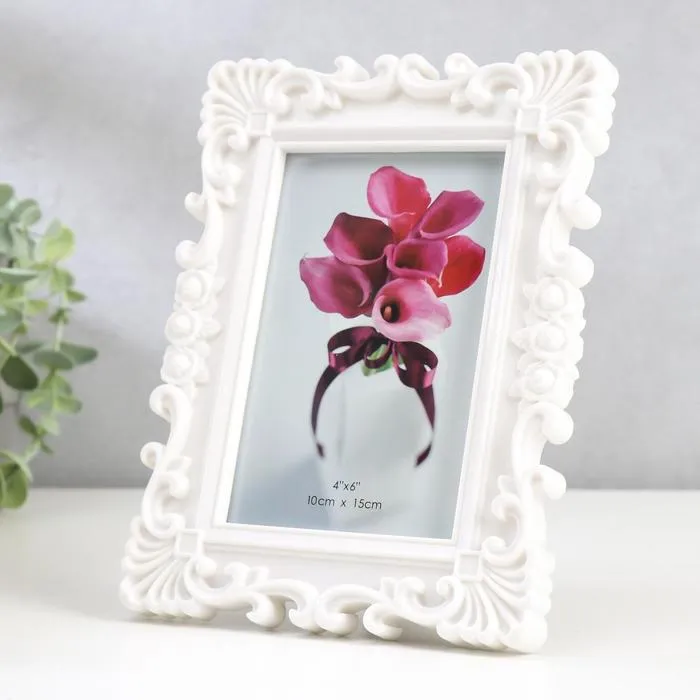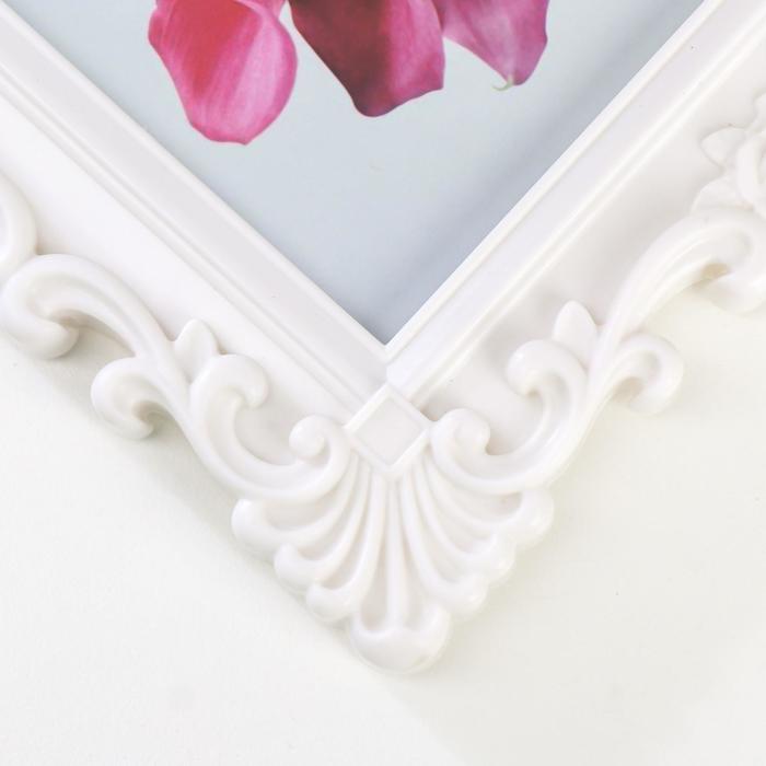Фоторамка для фото 10×15 см «Розочки и завитки роза», пластик, белая, 20.5×15.5 см — Характеристики
