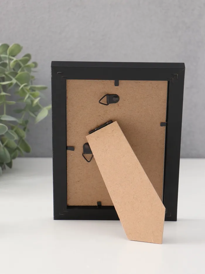 - Удобный крепеж в виде подвеса и подставки позволяет разместить рамку как на стене, так и на столе.