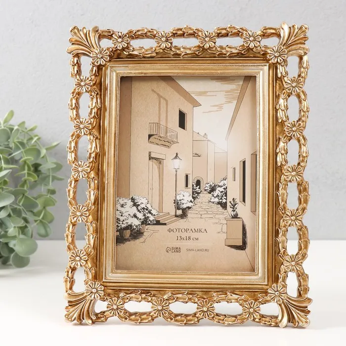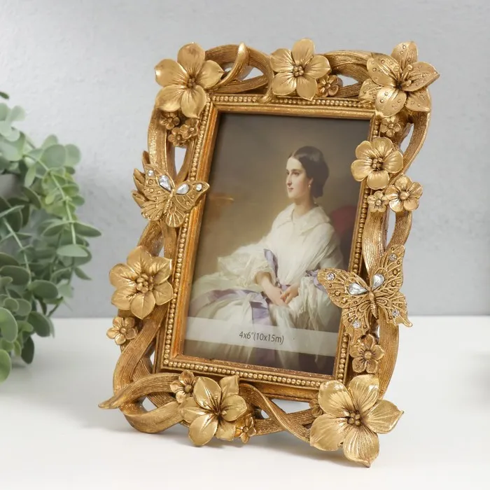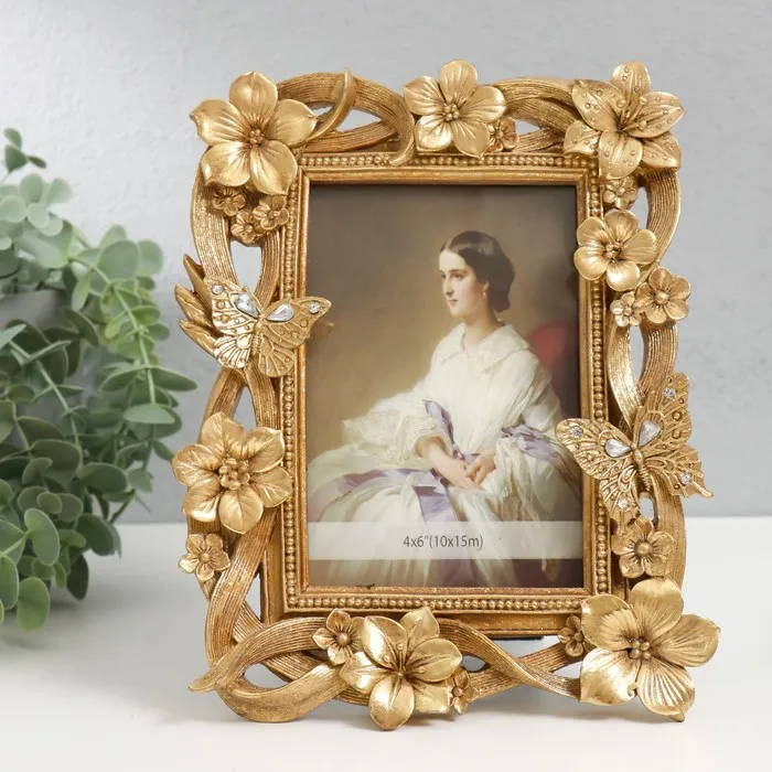 Фоторамка для фото 10×15 см «Цветочная нежность», полистоун под золото, 23×18×2 см — Характеристики