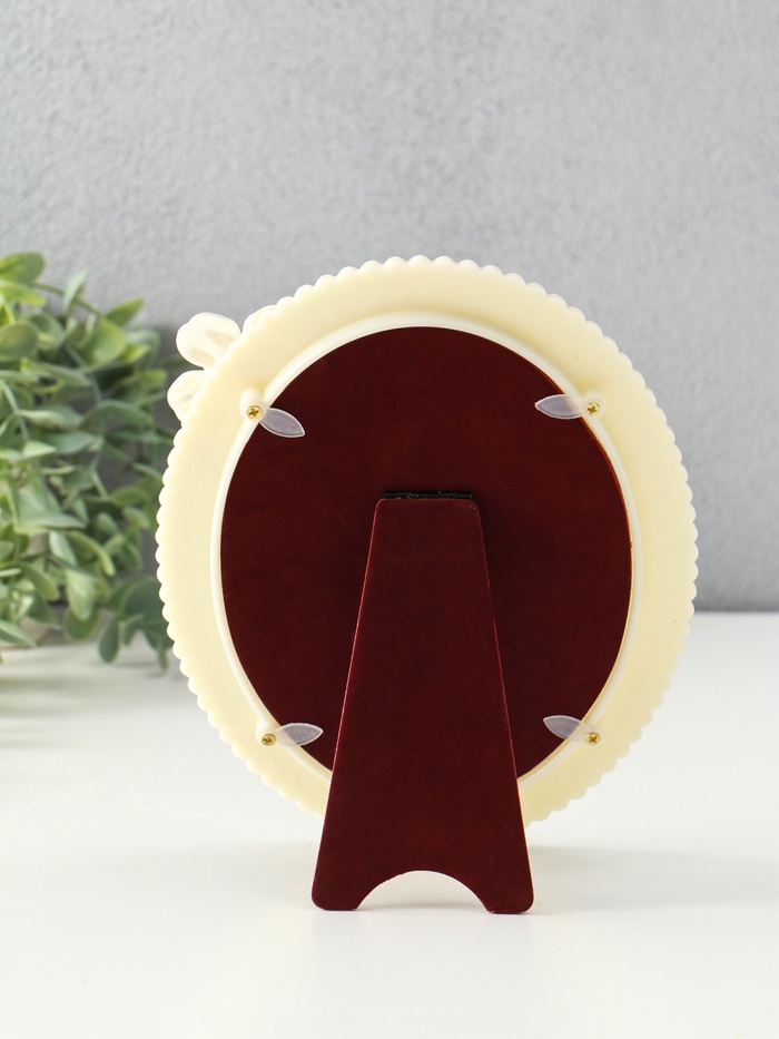 Благодаря продуманной конструкции с устойчивой подставкой, рамка уверенно держится на любой ровной поверхности — будь то туалетный столик, книжная полка или офисный стол. Пластик высокого качества обеспечивает лёгкость, долговечность и безопасность, а овальная форма идеально подходит для фото формата 13×18 см, придавая композиции завершённость и утончённость.