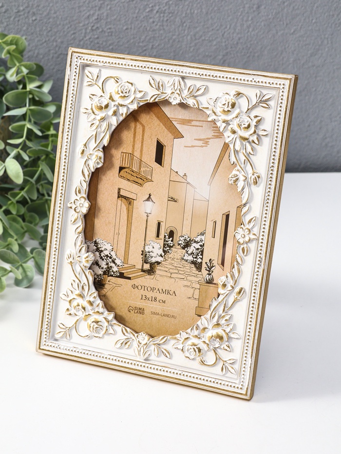 Фоторамка для фото 13×18 см «Овал в розах», полистоун, белая с золотом, 14×1.5×19 см — Характеристики