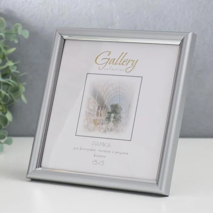 Фоторамка для фото 15×15 см Gallery, пластик, серебро, (пластиковый экран)