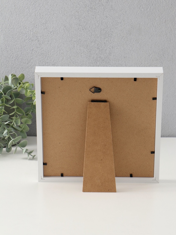 Превратите любимый снимок в изысканный элемент интерьера с этой элегантной фоторамкой. Её лаконичный дизайн с белоснежным паспарту создаёт эффект галерейного оформления, бережно выделяя фотографию 20×20 см в центре композиции 14×14 см.