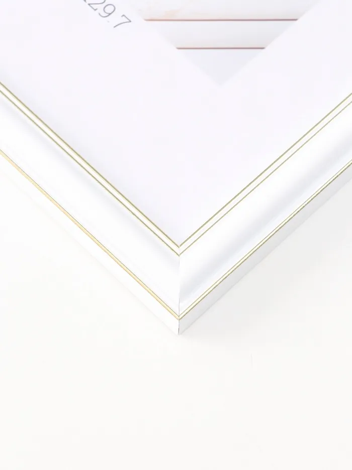 Представляем вашему вниманию фоторамку, которая станет настоящим украшением вашего интерьера и идеальным обрамлением для любимых воспоминаний. Стильное сочетание белого и золотистого цветов создает атмосферу элегантности и утончённости. Такая рамка не только подчеркнёт важность момента, запечатлённого на фотографии, но и добавит изысканности в любое пространство.