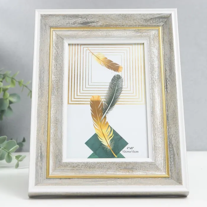 Фоторамка пластик 10х15 см "Норвегия" серая, белая обводка 21,7х16,8 см