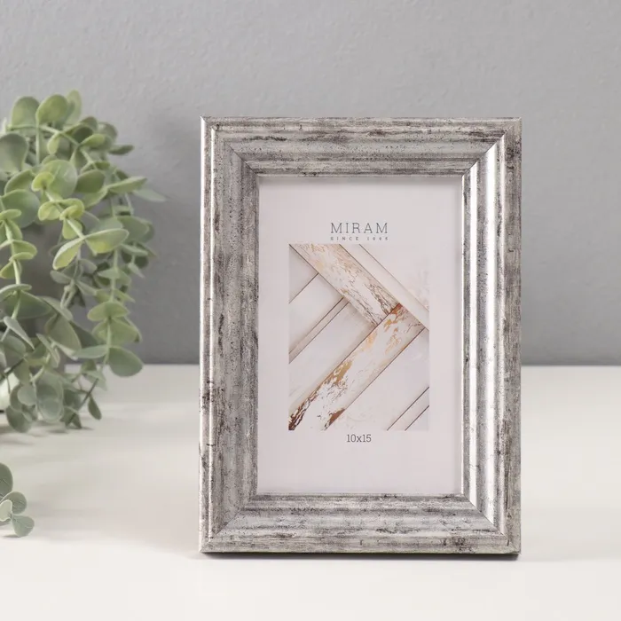 Фоторамка пластик МИРАМ 10х15 см, 642623-4 серебро (пластиковый экран)