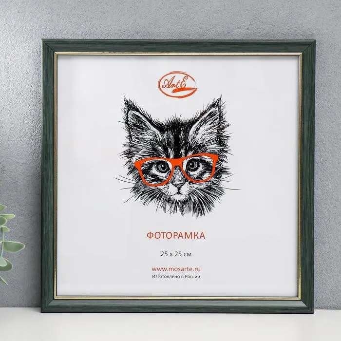 Фоторамка пластик 25х25 см, зелёный с золотом ( пластиковый экран )