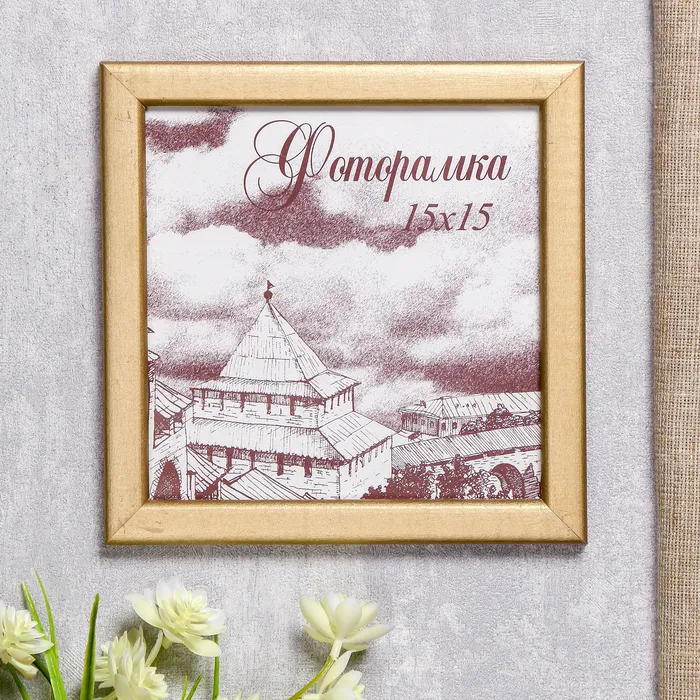 Фоторамка сосна с19 золото 15х15 см (пластиковый экран)