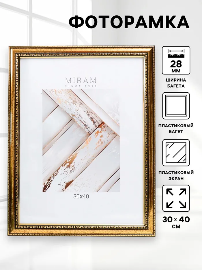 Фоторамка пластик "МИРАМ" 30х40 см золото (пластиковый экран)