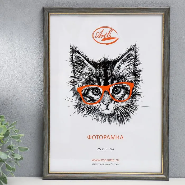 Фоторамка пластик 25х35 см, серый с золотом (пластиковый экран)