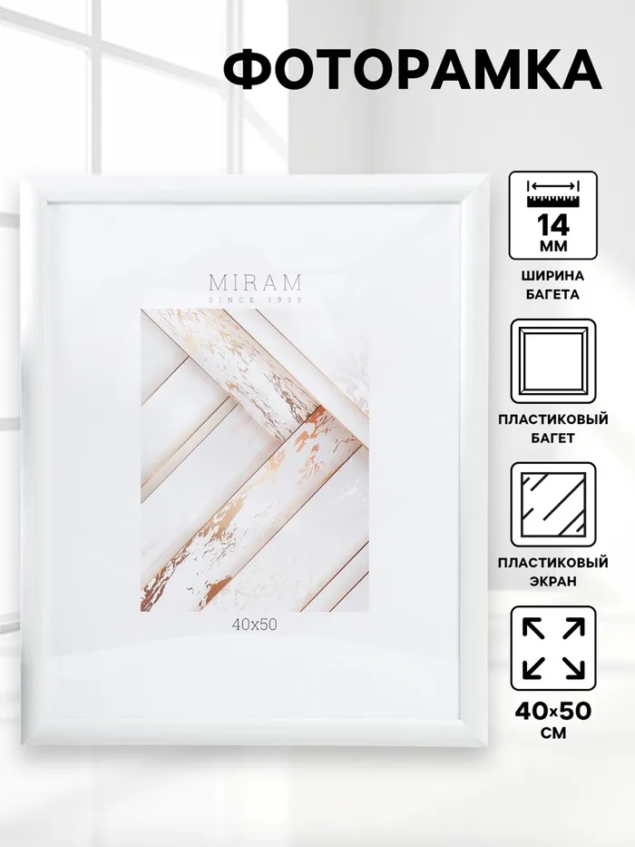 Фоторамка пластик "МИРАМ" 40х50 см 647261-16, белый (пластиковый экран)