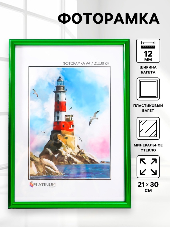 Фоторамка для фото 21×30 см «Радуга», пластик, зелёный металлик, (стекло) — Характеристики