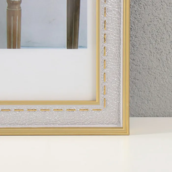 Фоторамка для фото 30×40 см «Фактура под кожу со стежками», пластик, серебро с золотом, 1.5×33.6×43.6 см — Характеристики
