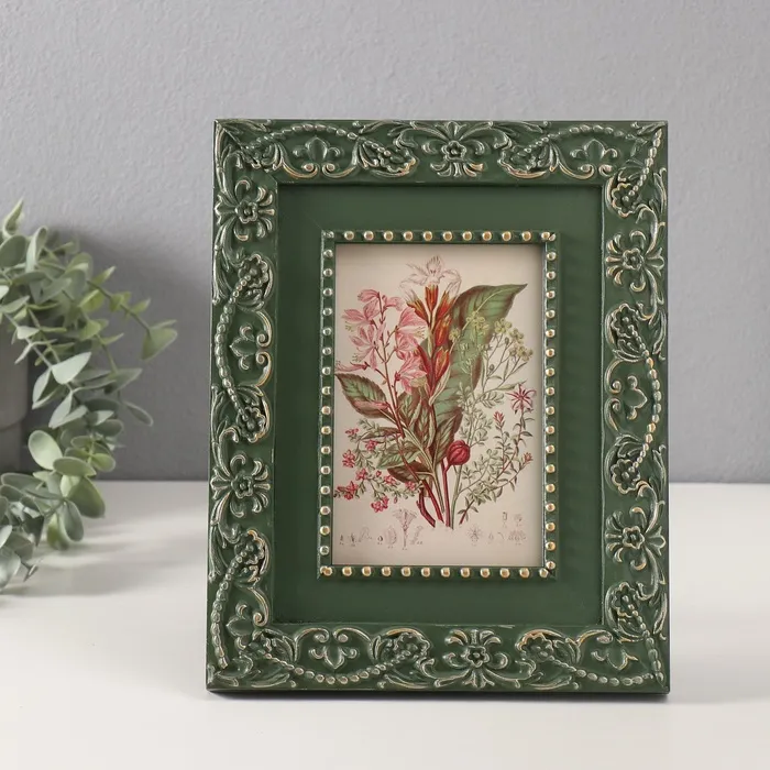 Фоторамка 10×15 см «Цветочная окантовка», МДФ, зелёная, 2.1×20×25 см
