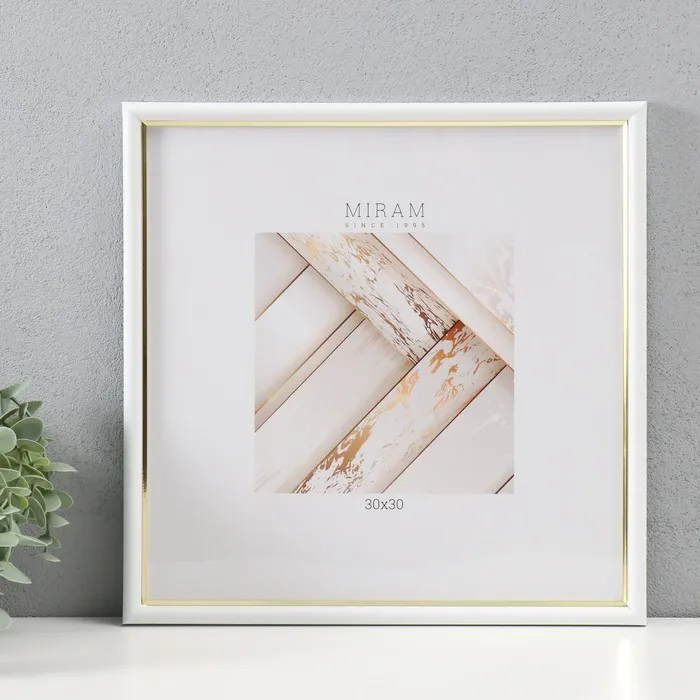 Фоторамка пластик "МИРАМ" 30х30 см, 636461-33, белый с золотом (пластиковый экран)