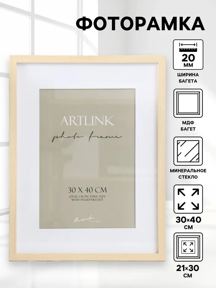 Фоторамка МДФ "Ellis" 30х40 см, с паспарту, натуральный 76717