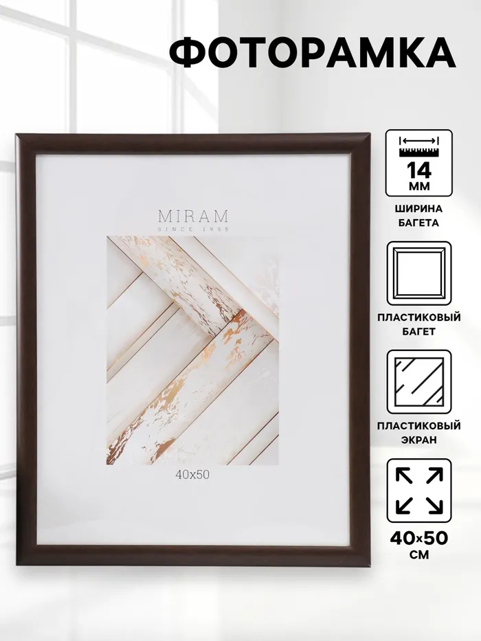 Фоторамка для фото 40×50 см «МИРАМ», пластик, тёмный орех, (пластиковый экран) — Характеристики