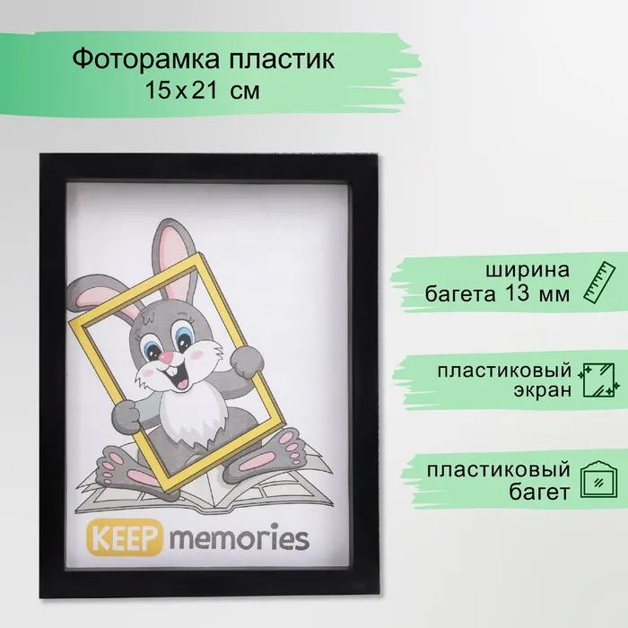 Фоторамка пластик L-3 15х21 см чёрный (пластиковый экран)
