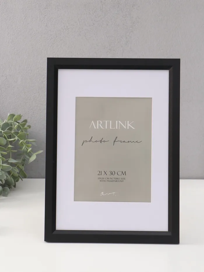 Фоторамка для фото 21×30 см, с паспарту (15×20 см), Anna, МДФ, чёрный (пластиковый экран)
