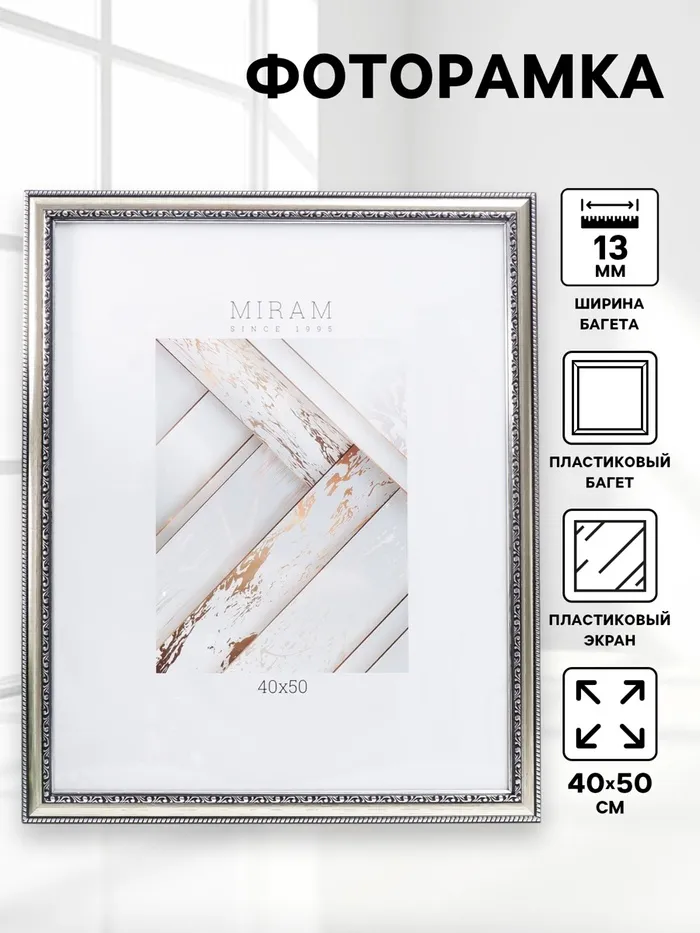 Фоторамка пластик "МИРАМ" 40х50 см серебро (пластиковый экран)