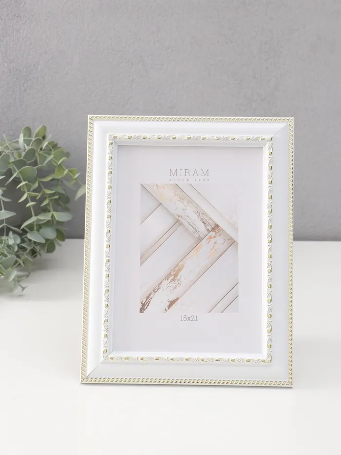 Фоторамка для фото 15×21 см «МИРАМ», пластик, белый с золотом